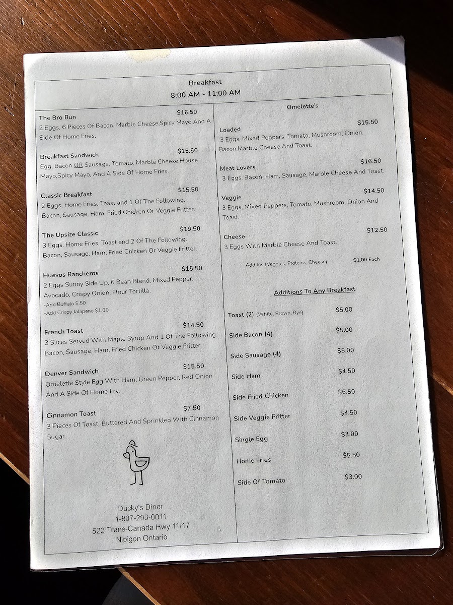 Welcome to Ducky’s Diner, a charming stop along the Trans-Canada Highway, where hearty meals and warm hospitality collide. Nestled in Nipigon, Ontario, this diner is celebrated for its satisfying breakfast offerings and generous portions that leave diners smiling and satisfied.